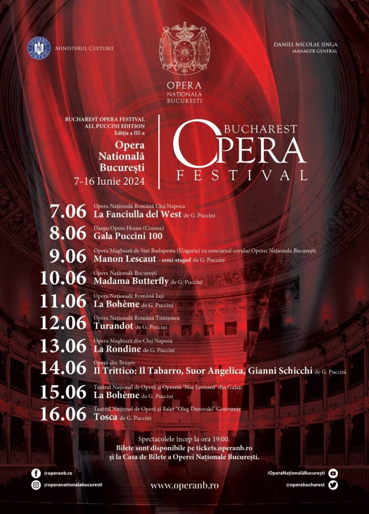 Opera Națională București anunță lansarea campaniei de vânzare a abonamentelor pentru Bucharest Opera Festival, ediția a III-a, o experiență de neuitat pentru iubitorii de operă. Sub deviza All Puccini Edition, în acest an, festivalul aduce în prim-plan creațiile marelui compozitor italian Giacomo Puccini, într-o serie de 10 seri consecutive de evenimente muzicale care vor avea loc în perioada 7-16 iunie […]