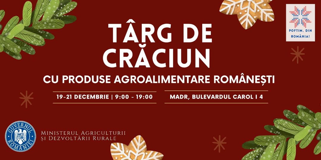 The post Brânză, caş, cârnaţi de porc, caltaboş, jumări dar şi cozonac, la Târgul de Crăciun, găzduit în perioada 19-21 decembrie de Ministerul Agriculturii şi Dezvoltării Rurale appeared first on News Bucuresti.