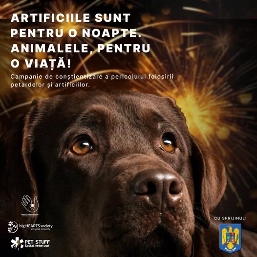 Artificiile sunt pentru o noapte. Animalele, pentru o viaţă  este o Campanie de conştientizare privind riscurile artificiilor şi petardelor, demarată de Protecţia Animalelor CJ Ilfov, Asociaţia Big Hearts Society, Spitalul Veterinar Pet Stuff, cu sprijinul Ministerului Afacerilor Interne – Inspectoratul General al Poliţiei Române, Direcţia Protecţia Animalelor. An de an, sute de animale se pierd […]