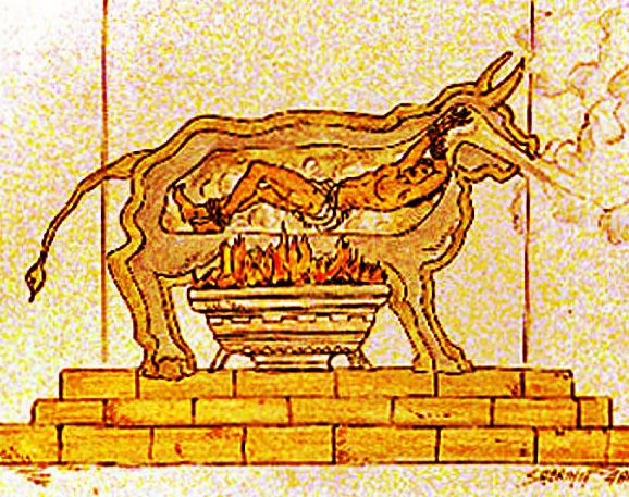 Taurul de bronz: forma de tortură menționată a fost folosită pentru prima dată în Grecia antică, acolo unde victima era închisă în taur, iar sub mulaj era aprins un foc ce începea să încălzească metalul.