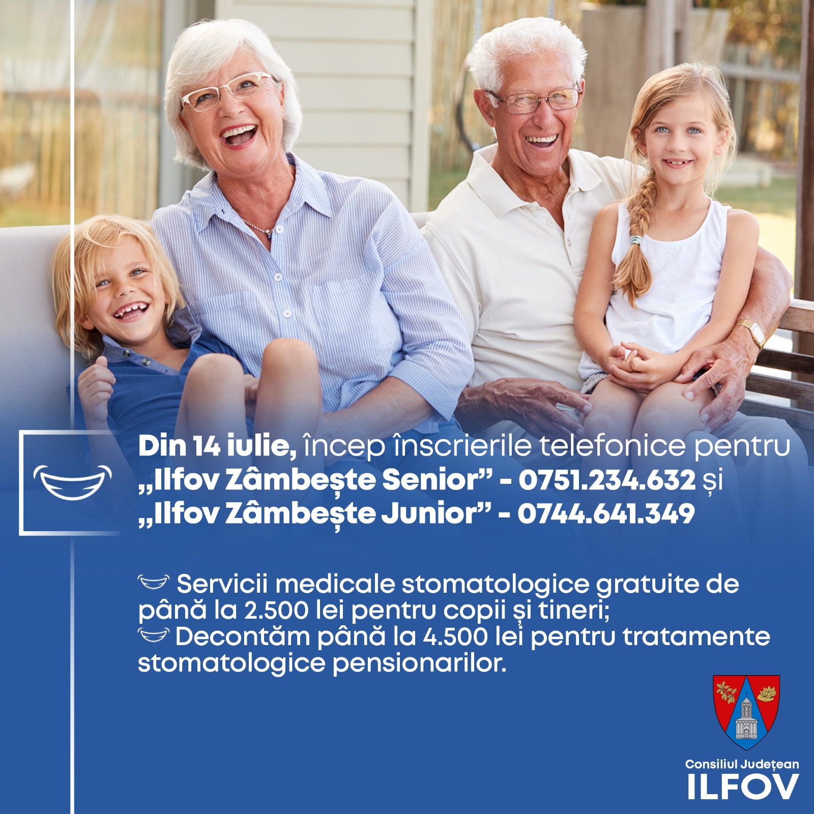 Consiliul Județean Ilfov continuă, pentru al treilea an consecutiv, programele sociale în vederea sprijinirii sănătății orale a ilfovenilor. Ilfov Zâmbește Junior – servicii stomatologice gratuite în valoare de până la 2.500 lei pentru copii și tineri (3–26 ani). Ilfov Zâmbește Senior – sprijin de până la 4.500 lei pentru tratamente stomatologice destinate persoanelor vârstnice. Până […]