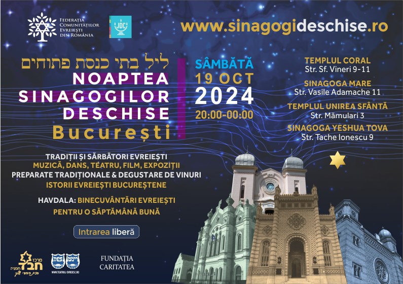 The post Noaptea Sinagogilor Deschise. Patru sinagogi bucureştene vor putea fi vizitate sâmbătă, de la ora 20.00 appeared first on News Bucuresti.