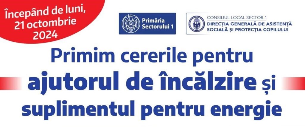 The post Sectorul 1: Începe perioada de depunere a cererilor pentru acordarea ajutorului de încălzire și a suplimentului pentru energie appeared first on News Bucuresti.