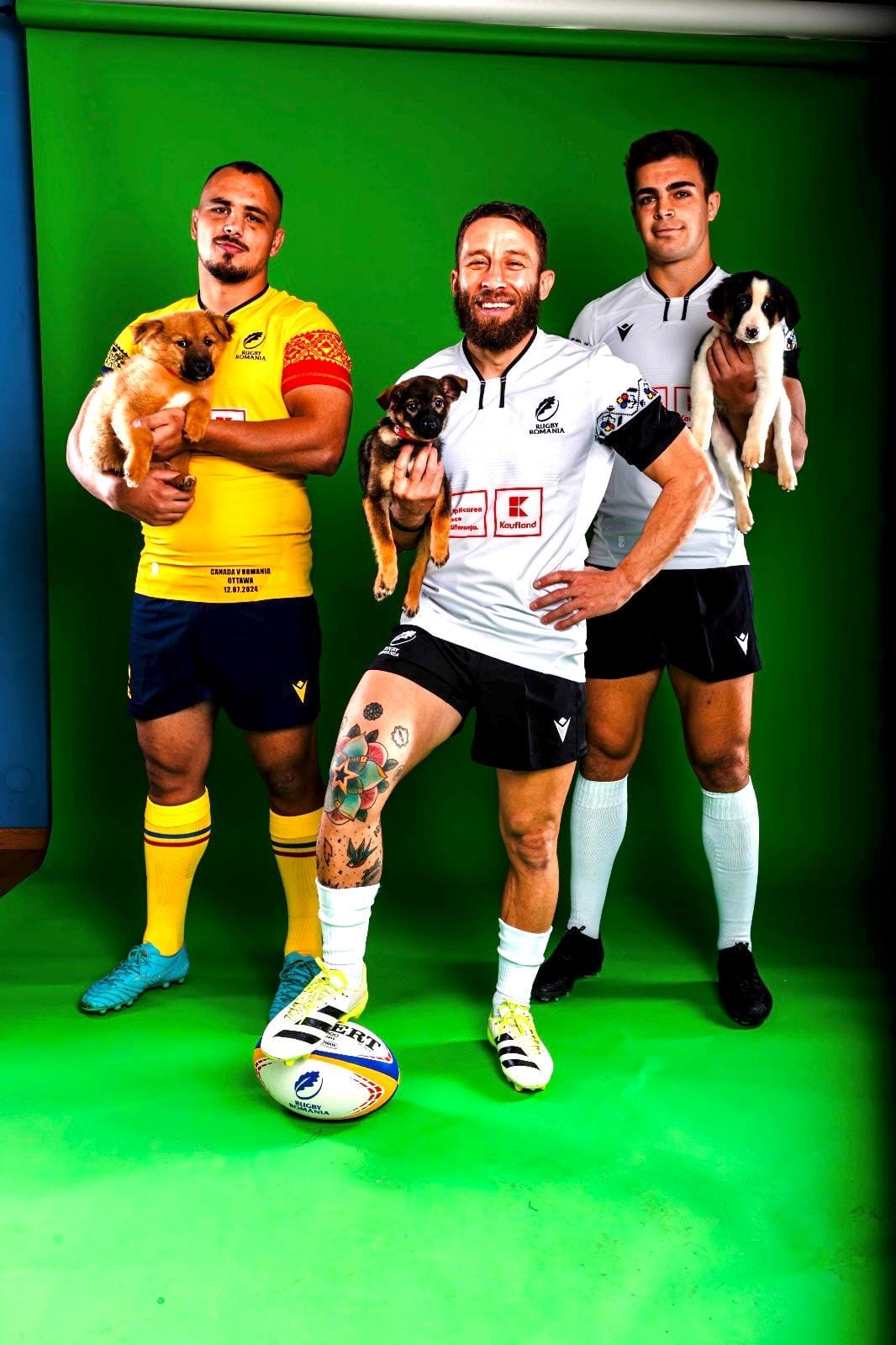 Sportivii lotului național de rugby al României, shooting photo alături de cățeii ASPA