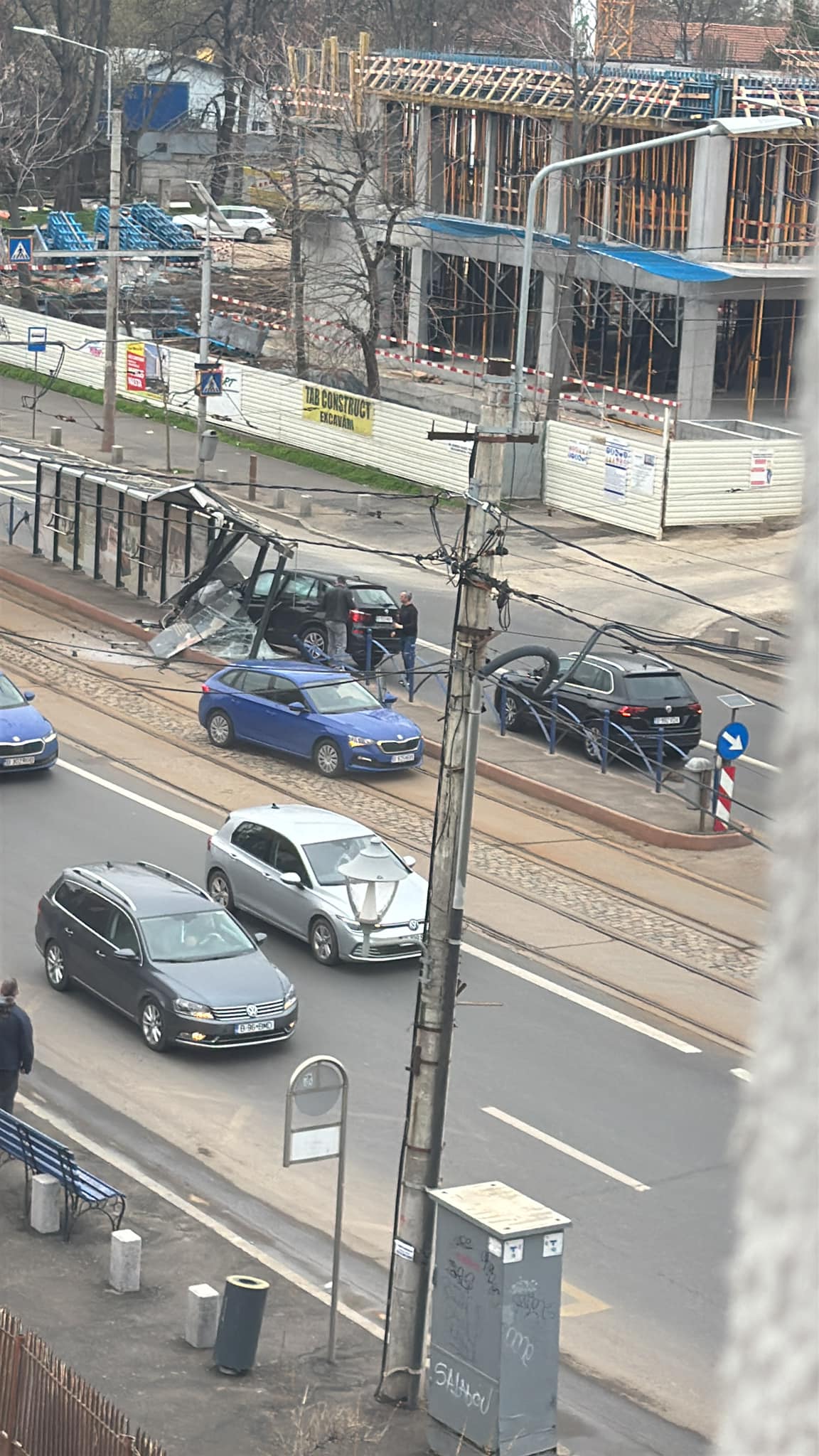 Stație de tramvai distrusă de un șofer. Incidentul a afectat, temporar, circulația pe linia 19 – FOTO