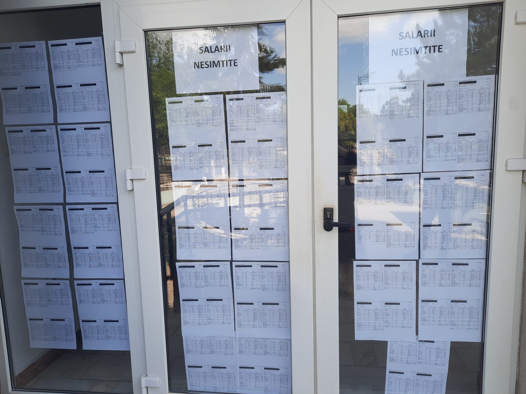 Val de proteste spontane în instituțiile de stat, după reducerea sporurilor: Angajații și-au pus în geam „salariile nesimțite”