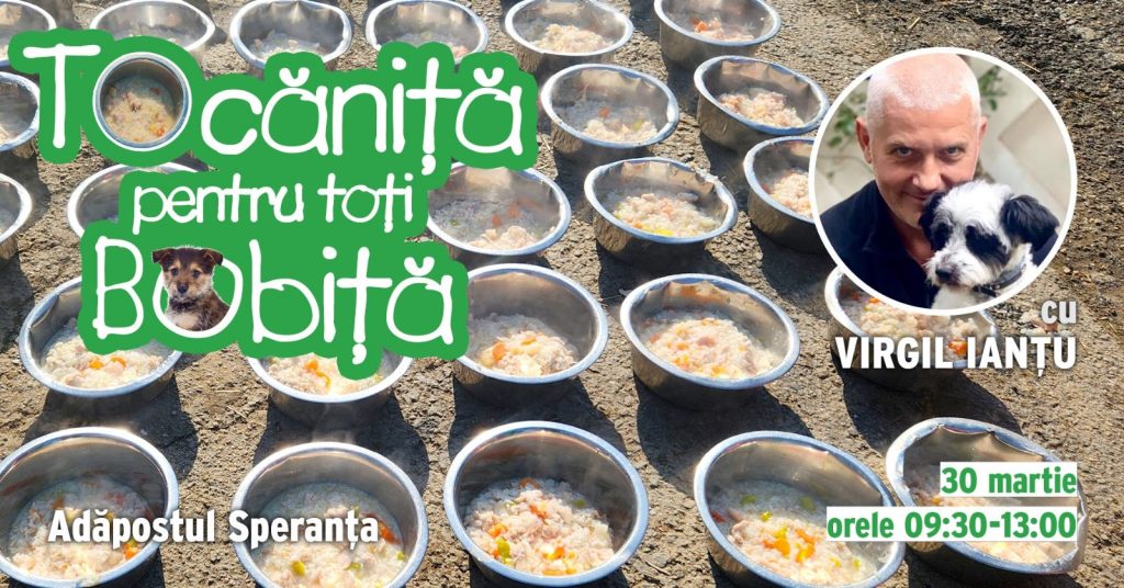 Virgil Ianțu va găti, sâmbătă, 30 martie, pentru aproape 500 de câini fără stăpân ai Adăpostului Speranța. El se va alătura, astfel, programului „Tocăniță pentru toți Bobiță”, serie de evenimente în scop caritabil prin care sunt promovate adopțiile responsabile și o societate prietenoasă cu animalele de companie. Evenimentul se desfășoară între orele 09.30-13.00 și este […]